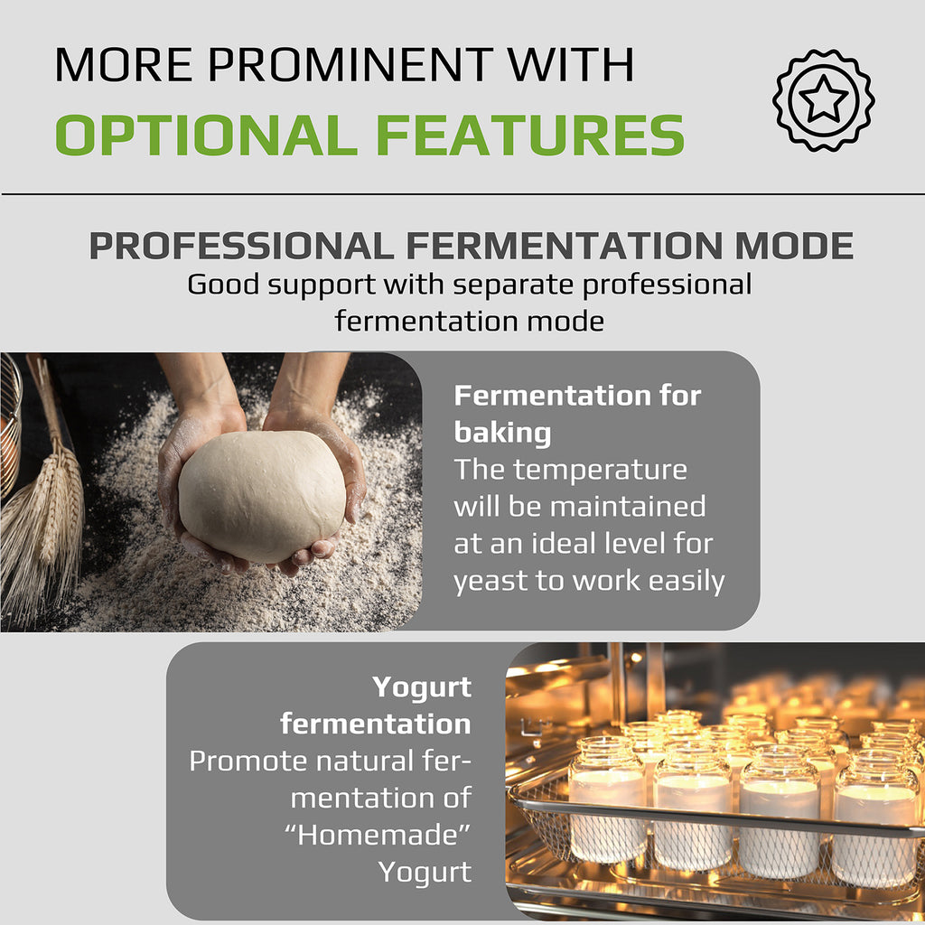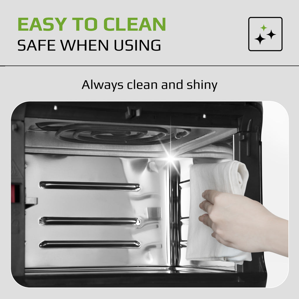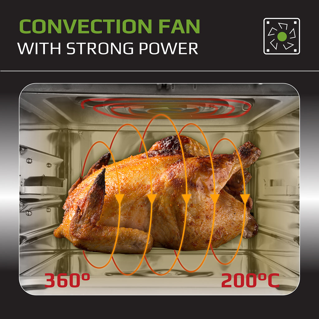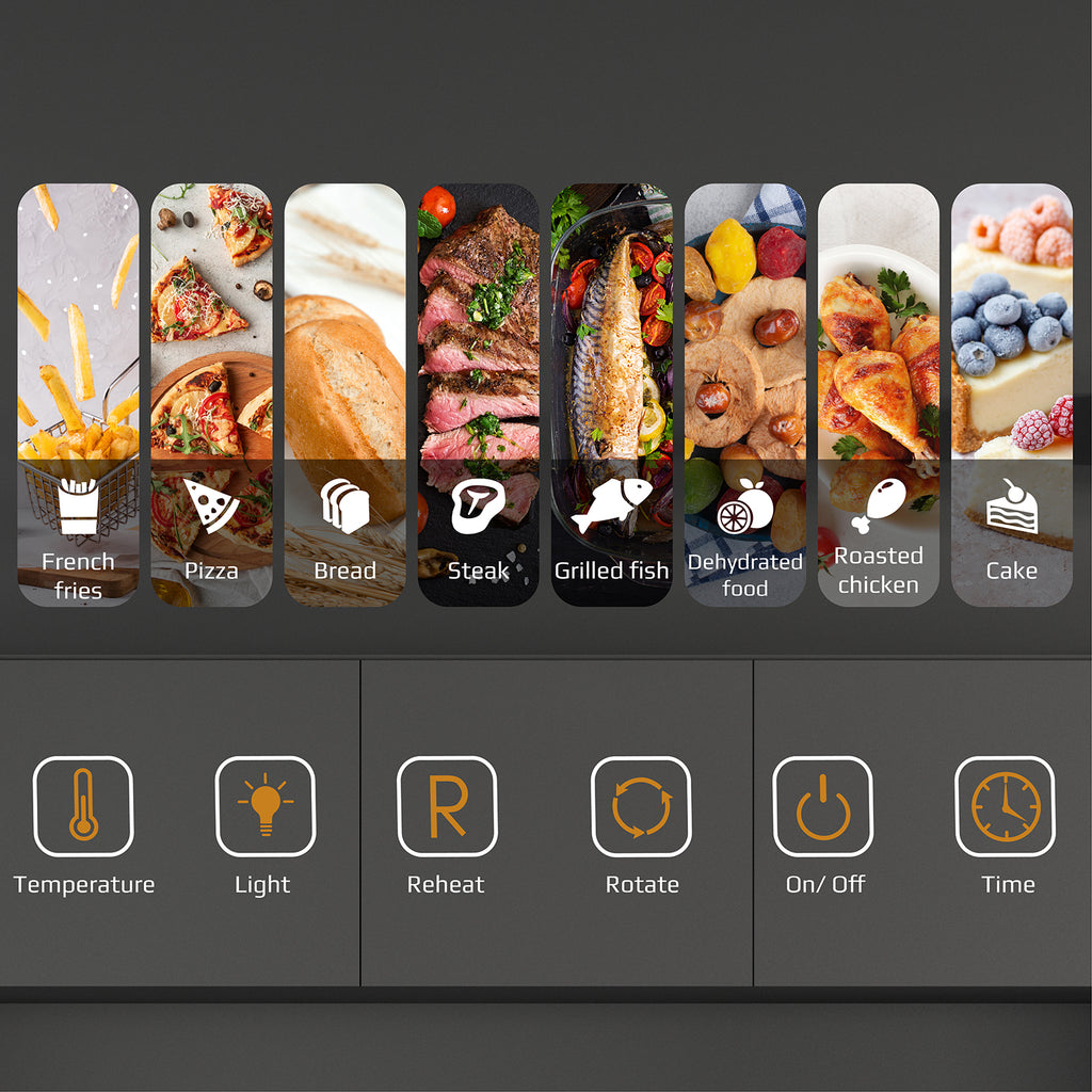 - The glass door combined with the light which can be turned on/ off as you like, helps to check the doneness of foods to avoid overheating, or not reaching the desired doneness.