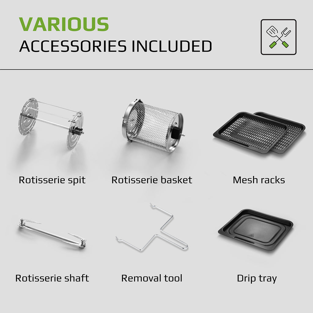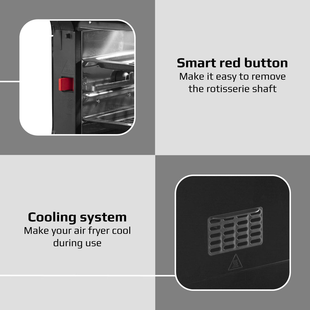 - Smart design makes it easy to put accessories and food inside more simply and conveniently than the similar air fryers on the market.