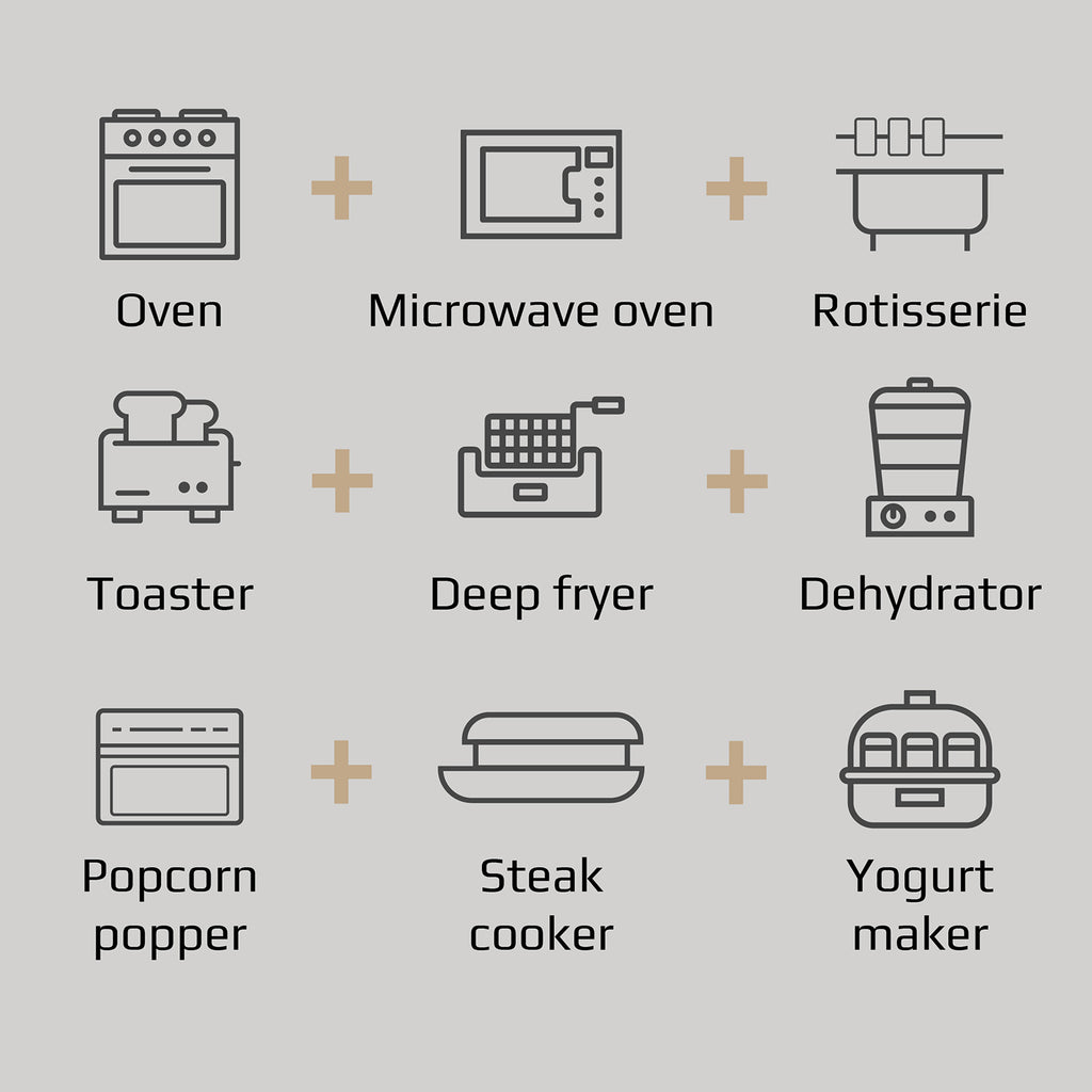 - By equipping your kitchen with OLIVO AF15 air fryer, you can be completely assured that its different features can completely replace 9 other kitchen appliances. You not only save costs, but also save time for cooking and preparing dishes as well as cleaning after cooking.