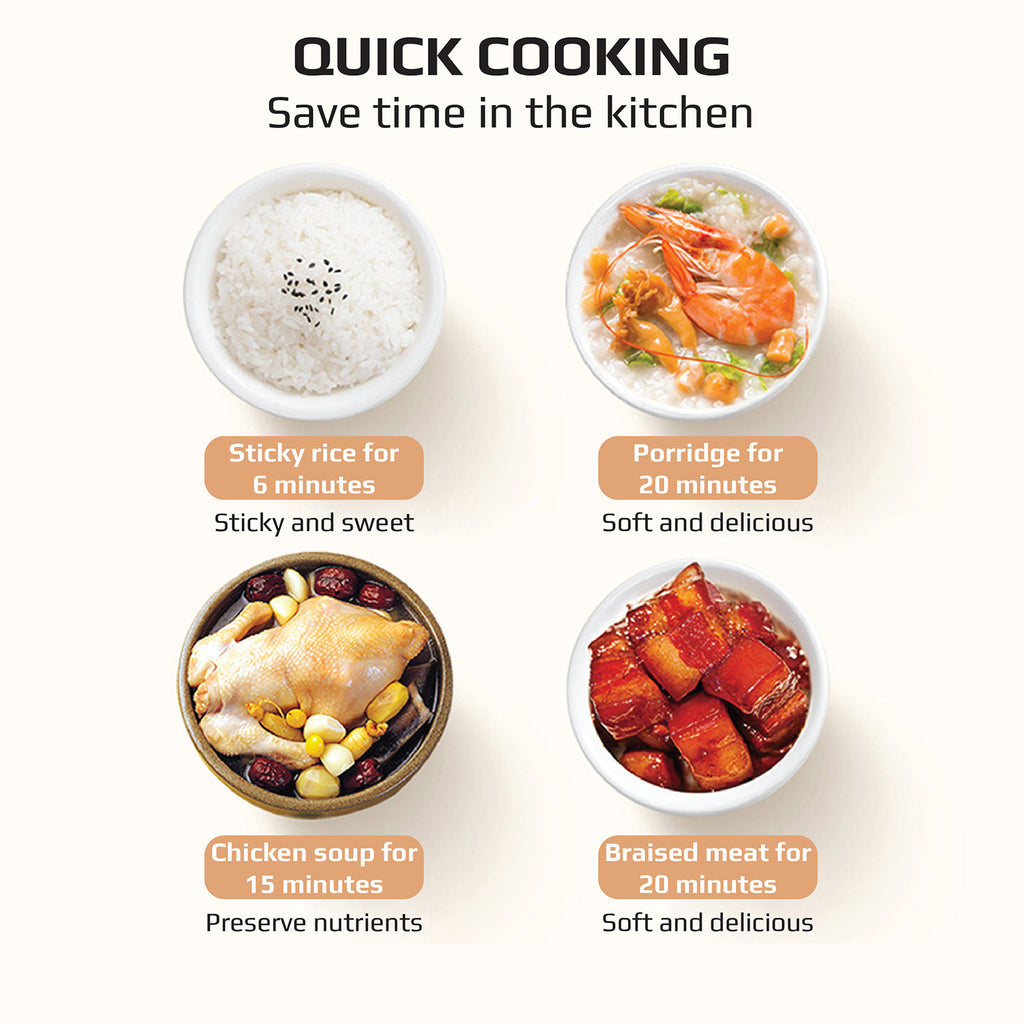 When cooking with gas using conventional mechanical pressure cookers or conventional cooking pots, you waste both time and a lot of energy. Because in the normal cooking process, the amount of heat generated is large, and the cooking time is long, resulting in more energy consumption than usual.
