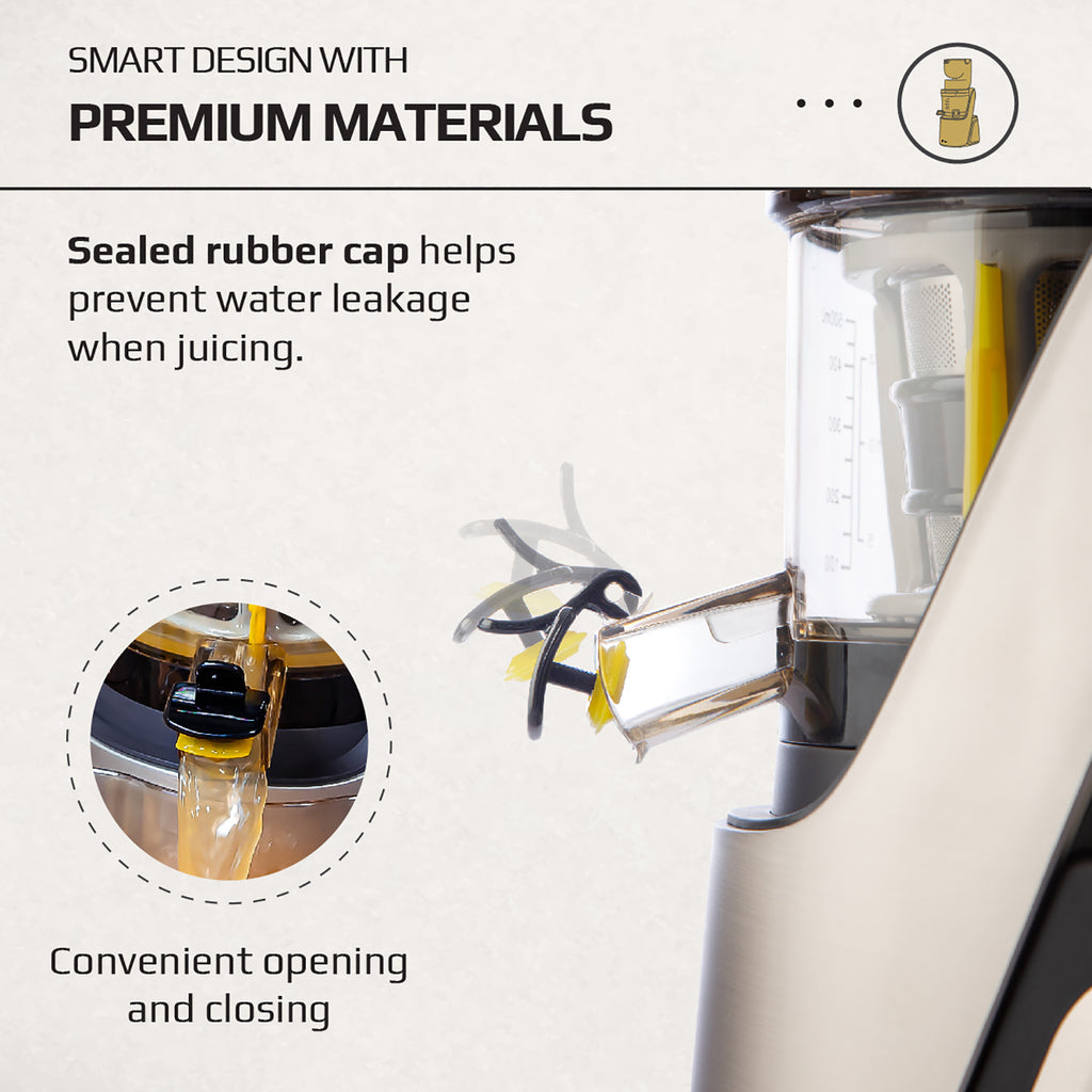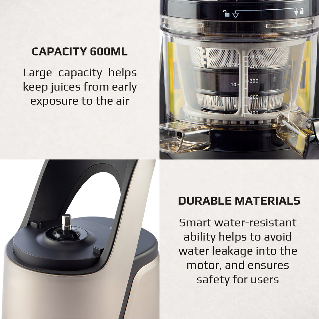 - The juicing chamber with a capacity of up to 600ml is made of TRITAN plastic material, extremely durable and difficult to wear.