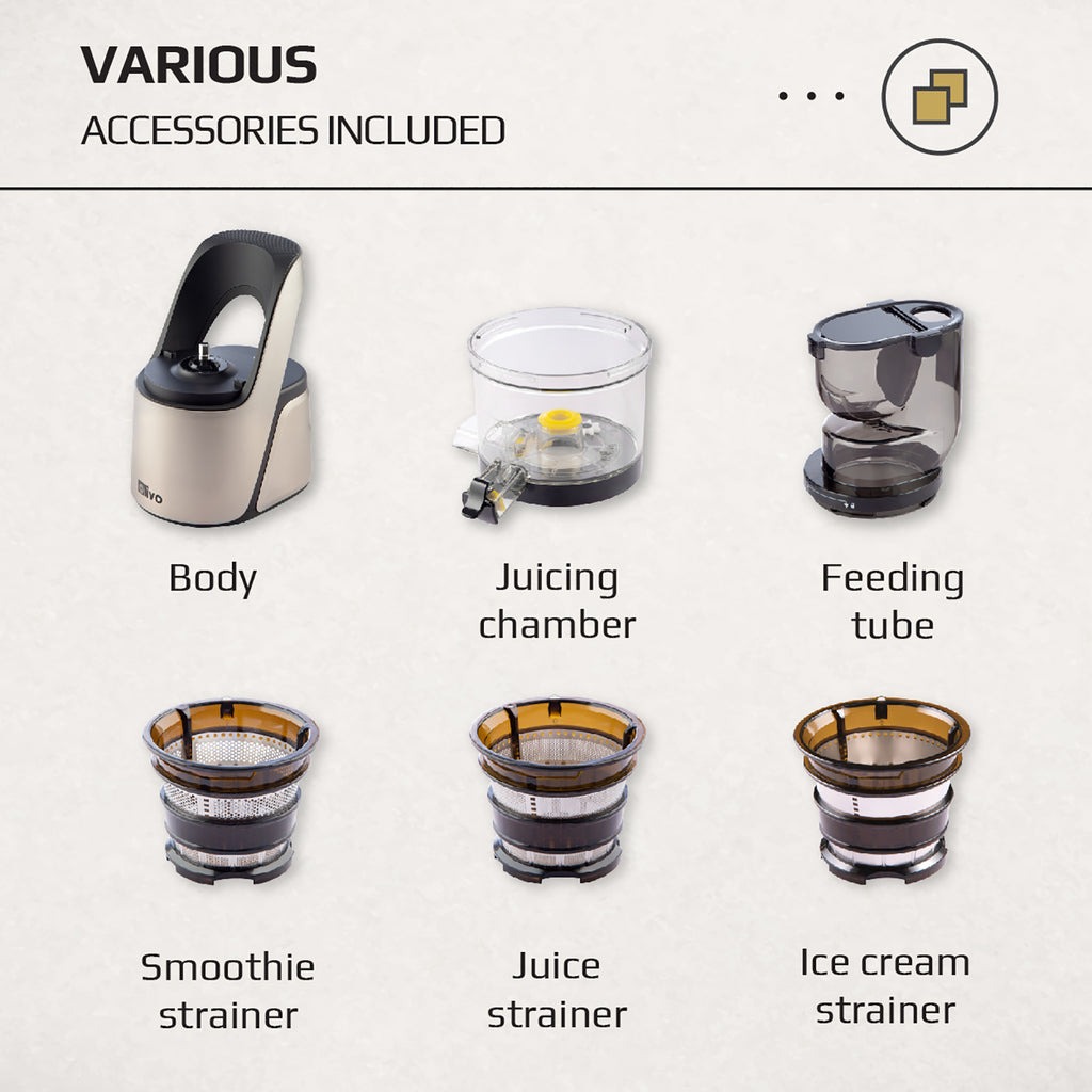 - Dual feeding tube for faster juicing: Preparation of ingredients is the most time consuming part of the juicing process, but the OLIVO SJ189 Slow Juicer makes it easier than ever. You will not have to cut the ingredients too small. The OLIVO SJ189’s feeding tube design helps juicing fruit up to 3 times faster than a standard vertical slow juicer, while keeping the nutritional value intact.