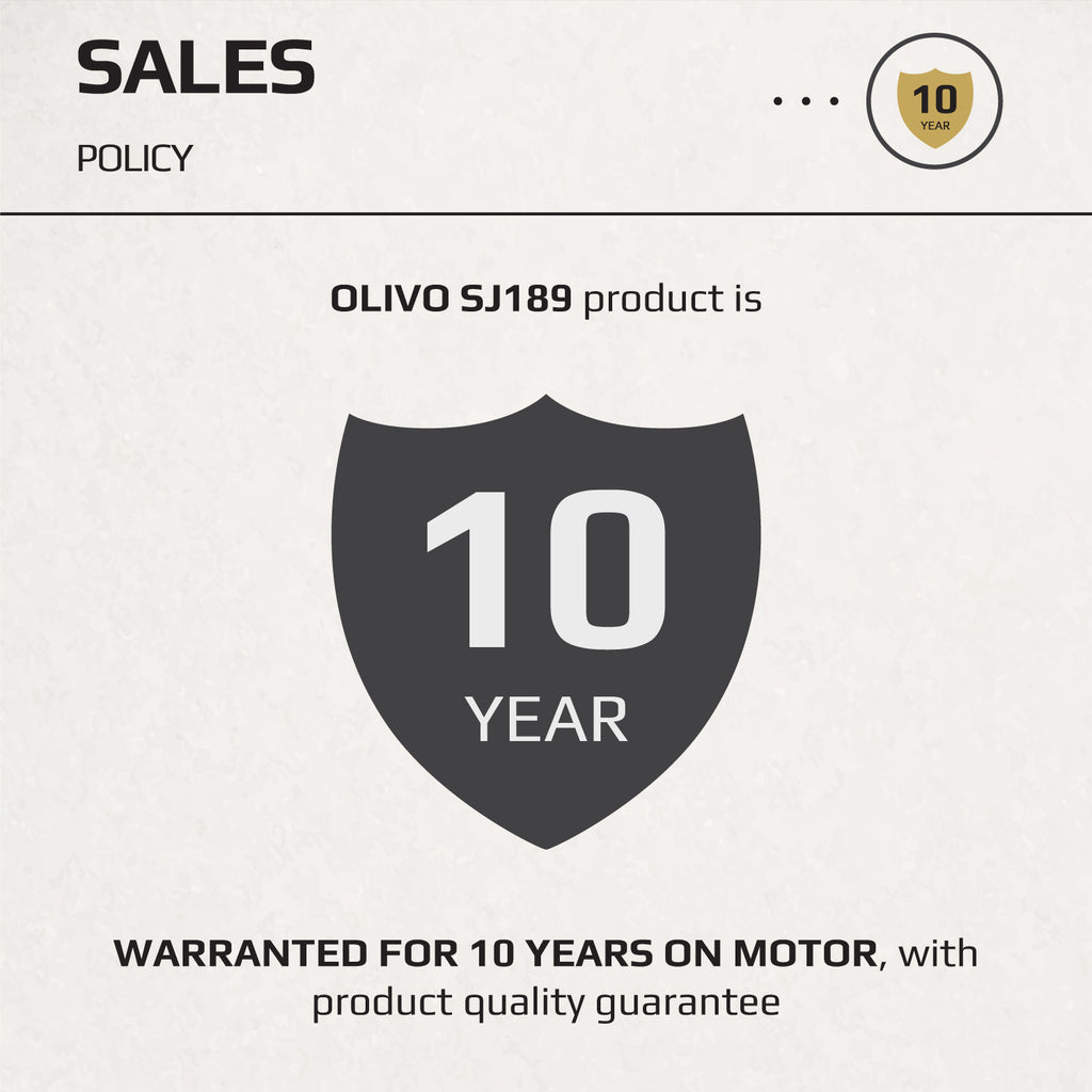 - OLIVO SJ189 affirms its quality and durability over time with a 10-year warranty on the motor to give you peace of mind during use.