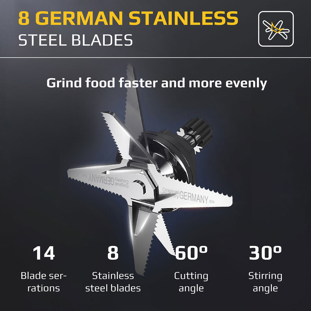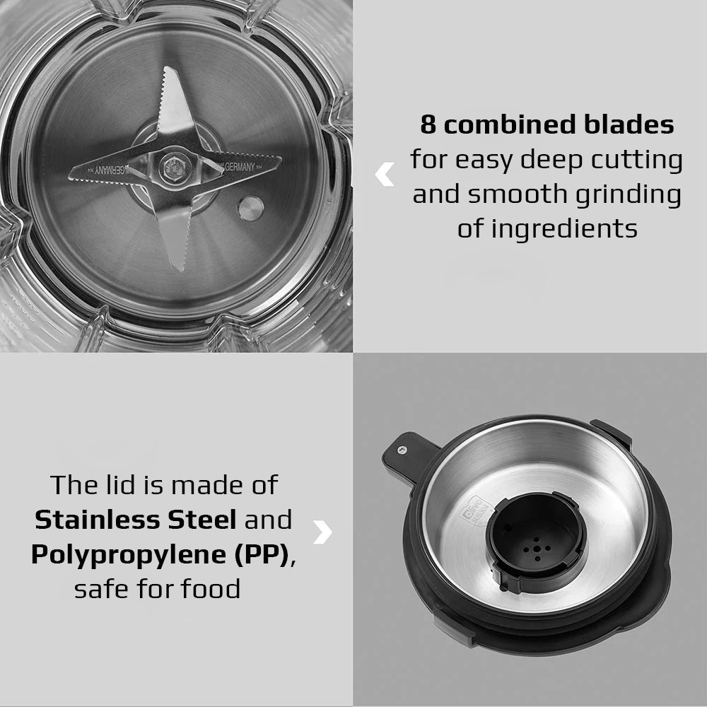 8 STAINLESS STEEL Dual Blades using OLIVO Perfect Cut technology ensure fast and even food crushing result.